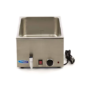 Dizajn korita u skladu s dimenzijama GN spremnika Stražnja rešetka od lijevanog željeza otporna na ogrebotine Ormar za pohranu Termostatska kontrola temperature Cijevni grijači od nehrđajućeg čelika ispod spremnika