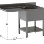 Sudoper sa 1 vaskom 1000x700x850mm sa policom, ocj. ploha desno – 304-430