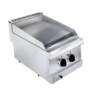 Gornje ploče dostupne su u glatkim, rebrastim ili kombiniranim izvedbama Ploča debljine 15 mm od čelika ST 52 ili tvrdog kromiranog čelika Nagnuta površina za prženje za jednostavno održavanje s odvodom Ravnomjerno zagrijavanje Strojno obrađene ploče Ladica za odvod velikih dimenzija Regulacija temperature termostatom (struja) Sigurnosni uređaj termoelekcije spojen na plamenik Piezo paljenje Dvostruka neovisna površina za kuhanje Izolirani za sprečavanje pregrijavanja i gubitka energije Zaobljeni kutovi olakšavaju pravilno čišćenje