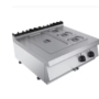 | Description | Izrada od nehrđajućeg čelika | Gornje ploče dostupne su u glatkim, rebrastim ili kombiniranim izvedbama | Gornje ploče dostupne su u glatkim, rebrastim ili kombiniranim izvedbama | Pokrivna ploča debljine 3 mm Velika ladica za pražnjenje Kontrola temperature termostata (električni) Izolirano kako bi se spriječilo pregrijavanje i gubitak energije Zaobljeni kutovi za lakše pravilno čišćenje | Gornje ploče dostupne su u glatkim, rebrastim ili kombiniranim izvedbama Ploča debljine 15 mm od čelika ST 52 ili tvrdog kromiranog čelika Nagnuta površina za prženje za jednostavno održavanje s odvodom Ravnomjerno zagrijavanje Strojno obrađene ploče Ladica za odvod velikih dimenzija Regulacija temperature termostatom (struja) Sigurnosni uređaj termoelekcije spojen na plamenik Piezo paljenje Dvostruka neovisna površina za kuhanje Izolirani za sprečavanje pregrijavanja i gubitka energije Zaobljeni kutovi olakšavaju pravilno čišćenje | Gornje ploče dostupne su u glatkim, rebrastim ili kombiniranim izvedbama | ||||||||||||||||||||||||